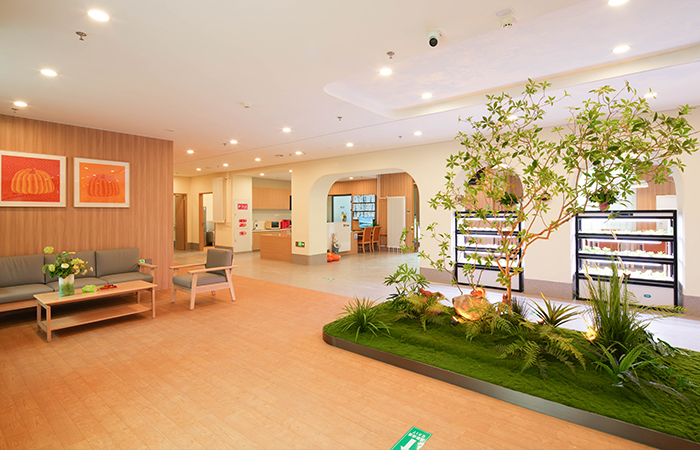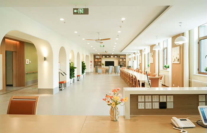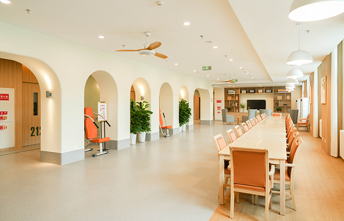 在適老化空間,我們結(jié)合老年人行為、心理等特性,認為在康氧環(huán)境中設(shè)置無障礙設(shè)施尤為重要,不僅僅體現(xiàn)于無障礙通道或電梯,還包括視線監(jiān)視與近便的服務(wù)動線設(shè)計。