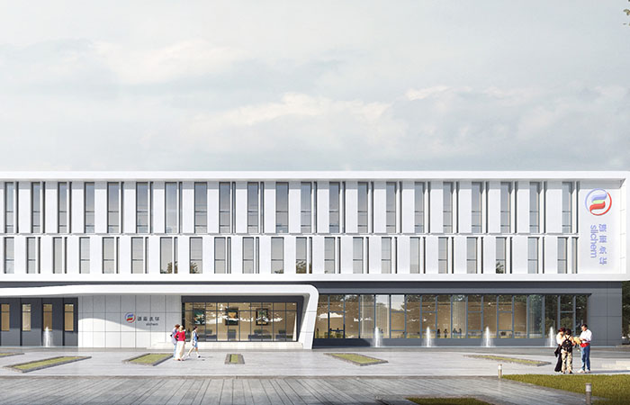 本工程為滄州誠志永華科技有限公司新型顯示材料項(xiàng)目,位于滄州渤海新區(qū)臨港經(jīng)濟(jì)技術(shù)開發(fā)區(qū)。定位為現(xiàn)代建筑風(fēng)格,以現(xiàn)代產(chǎn)業(yè)企業(yè)的辦公趨勢和需求為依據(jù),本著加強(qiáng)協(xié)作交流、激化創(chuàng)意思維、促進(jìn)身心健康高效工作環(huán)境的原則,以個(gè)性化和以人為本的設(shè)計(jì),塑造現(xiàn)代企業(yè)形象。方案設(shè)計(jì)以現(xiàn)代科技、交流共享為主題核心,打破傳統(tǒng)封閉的辦公模式和刻板印象,塑造具有企業(yè)專屬感的標(biāo)識形態(tài)。在滿足基本功能空間之外,打造舒適的交互性空間,進(jìn)一步促進(jìn)各種協(xié)作與交流。在規(guī)劃設(shè)計(jì)中,強(qiáng)調(diào)建筑與周邊環(huán)境的有機(jī)融合,注重城市風(fēng)貌建設(shè),同時(shí)內(nèi)部打造連貫性景觀,開闊視野。單體設(shè)計(jì)形象統(tǒng)一完整,細(xì)部處理簡潔,手法運(yùn)用注重人性化,開放,友善親和的建筑性格。在處理廠工藝流程上,充分尊重其工藝設(shè)計(jì)的功能性要求并在此基礎(chǔ)上注重設(shè)計(jì)語言的完善,強(qiáng)調(diào)廠區(qū)的風(fēng)格特征。建構(gòu)筑物在綠色、和諧、美觀之外,結(jié)合科學(xué)、潔凈的概念,在其藝術(shù)的美感之外,保證其標(biāo)志性。
