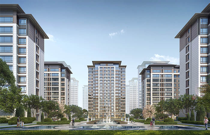 景觀:根據(jù)組團(tuán)分區(qū),東西向主軸景觀與南北布置的三層景觀院落形成兩個十字景觀軸,并與城市生態(tài)長廊相連。運(yùn)動、兒童、閱讀等不同的景觀空間相互交融。院內(nèi)設(shè)置環(huán)形健康步道,串聯(lián)多種公共活動空間和健身場地,滿足居民活動需求。