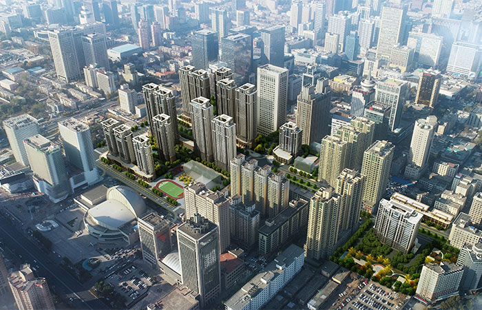 規(guī)劃結(jié)合項(xiàng)目用地情況,分為BDEFH五個(gè)地塊,通過(guò)點(diǎn)板結(jié)合的多層次圍合式布局方式,打造疏密得當(dāng)、主次分明的規(guī)劃和景觀結(jié)構(gòu)體系;通過(guò)建筑群體高低錯(cuò)落的布置,打破永安街兩側(cè)全為高層的規(guī)劃布局,局部形成開闊的視線通廊,整個(gè)片區(qū)高區(qū)低區(qū)交錯(cuò),空間疏密有致,避免形成單一的城市規(guī)劃形態(tài),形成總體北高南低,舒朗有度的城市天際線變化;項(xiàng)目通過(guò)小學(xué)、幼兒園等配套設(shè)施的合理布局,保障區(qū)域的教育配套設(shè)施;同時(shí),在地塊中心部位結(jié)合綠化景觀打造沿永安街特色商業(yè)步行街,重塑區(qū)域形象,實(shí)現(xiàn)對(duì)街道的更新與生長(zhǎng)。