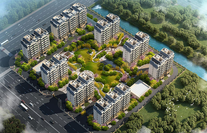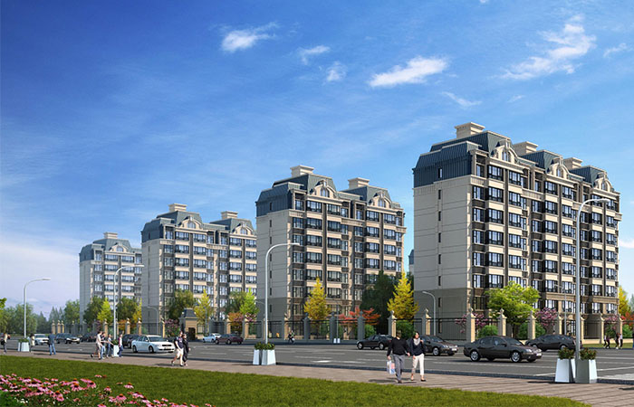 建筑造型采用西法風(fēng)情建筑風(fēng)格,墻體色彩以較為穩(wěn)重的褐色仿面磚真石漆,配以米黃色線腳。建筑底部處于近人范圍,建筑造型與細(xì)部強(qiáng)化處理,與優(yōu)美的庭院景觀相得益彰,共同營(yíng)造溫馨浪漫的社區(qū)氛圍。建筑中段簡(jiǎn)潔明快,韻律感強(qiáng)。建筑頂部通過造型變化,造型優(yōu)美精巧,形成小區(qū)標(biāo)志性的建筑特色。