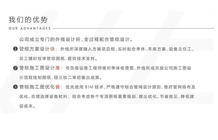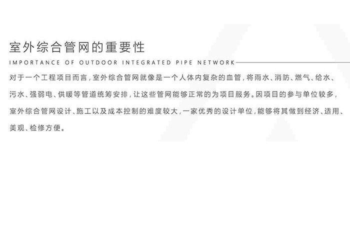 施工圖管綜設(shè)計(jì):依據(jù)室外管線綜合方案圖及各專業(yè)的單體施工圖,繪制室外管線綜合平面圖,然后各專業(yè)按照管線綜合平面圖繼續(xù)深化相關(guān)圖紙。