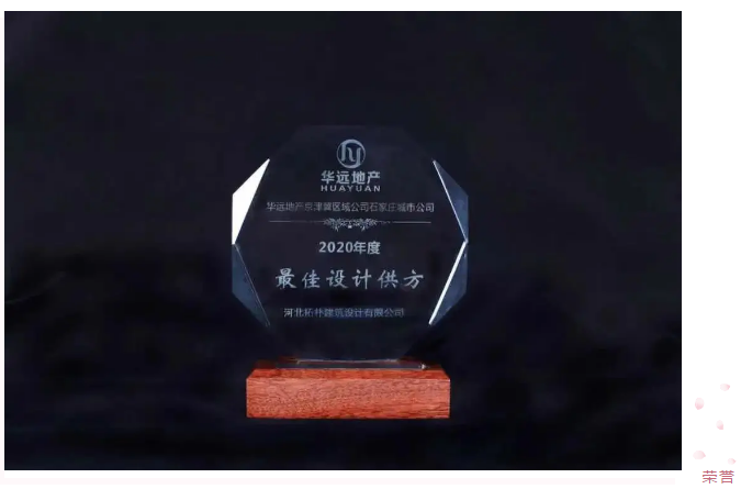我司榮獲華遠地產(chǎn)京津冀區(qū)域石家莊城市公司“2020年最佳設(shè)計供方”獎項。