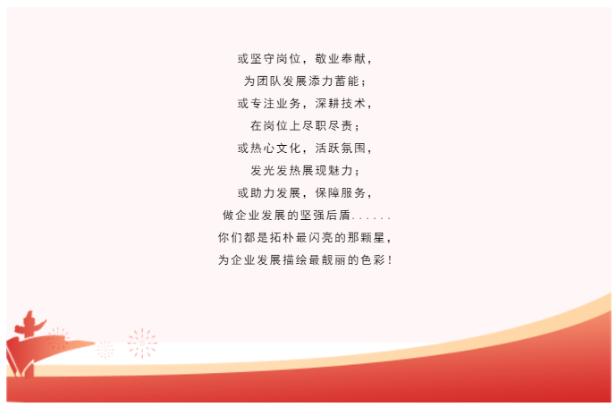 今天,我們表彰優(yōu)秀,鼓勵先進,為每一個努力追夢成長進步的拓樸戰(zhàn)友點贊加冕!