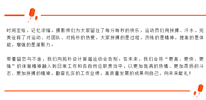展現(xiàn)了拓樸設計團結奮進、勇于爭先的優(yōu)良風貌!