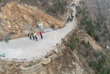 8時30分,副總經(jīng)理閆斌擔(dān)任總指揮,簡述了競賽規(guī)則并提醒大家注意安全,發(fā)出比賽開始命令后,大家爭先恐后地朝向山頂奔去!
