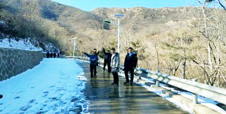 2019年2月16日,石家莊的白雪初化,陽(yáng)光已是分外溫暖,正值開(kāi)工的第一個(gè)周末,設(shè)備所舉行了西山森林公園登高戲雪活動(dòng)。此時(shí)的西山森林公園內(nèi),半幅道路的雪已被清掃,半幅留有一些,空氣優(yōu)良,視野開(kāi)闊,是登高舒意的絕好去處。
