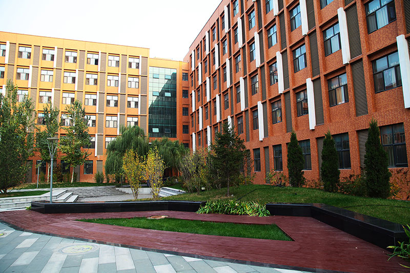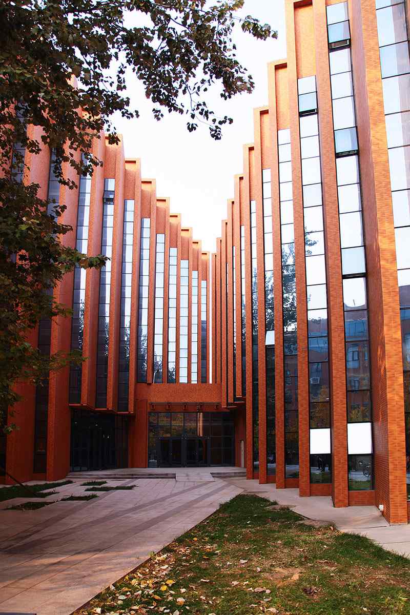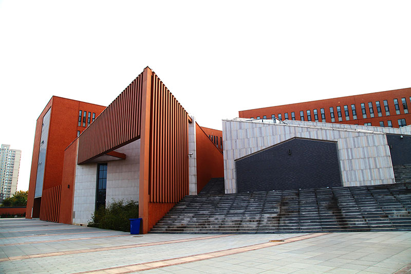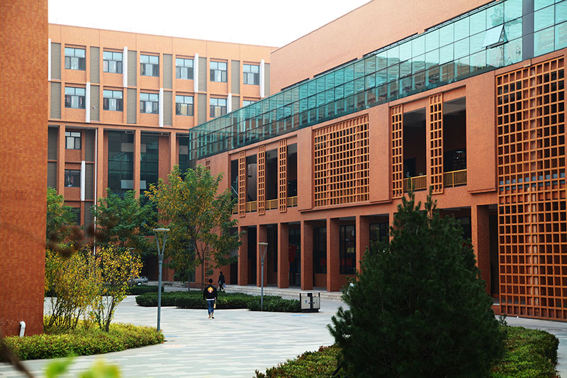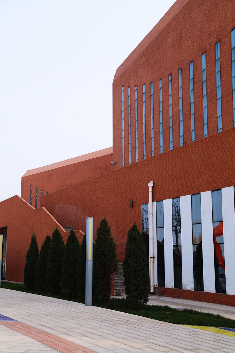 立面采用校園常用的紅磚手法,搭配鋼架及藍(lán)色玻璃幕,將傳統(tǒng)與現(xiàn)代相互結(jié)合,在給學(xué)生帶來濃厚傳統(tǒng)底蘊的同時又不失現(xiàn)代創(chuàng)新的文化氣息。