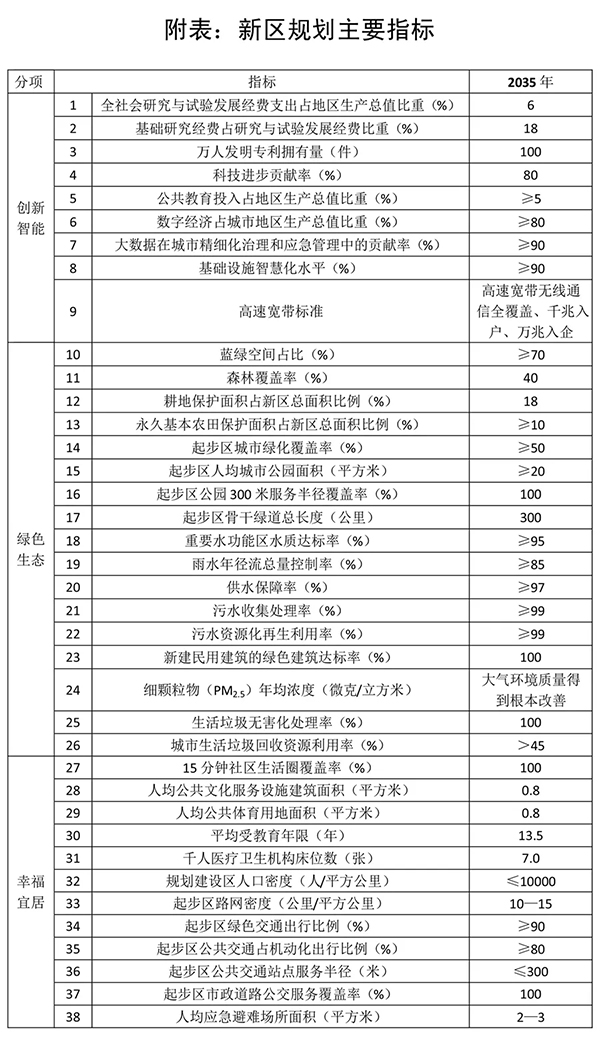 到本世紀中葉,全面建成高質量高水平的社會主義現(xiàn)代化城市,成為京津冀世界級城市群的重要一極。集中承接北京非首都功能成效顯著,為解決“大城市病”問題提供中國方案。新區(qū)各項經濟社會發(fā)展指標達到國際領先水平,治理體系和治理能力實現(xiàn)現(xiàn)代化,成為新時代高質量發(fā)展的全國樣板。彰顯中國特色社會主義制度優(yōu)越性,努力建設人類發(fā)展史上的典范城市,為實現(xiàn)中華民族偉大復興貢獻力量。
