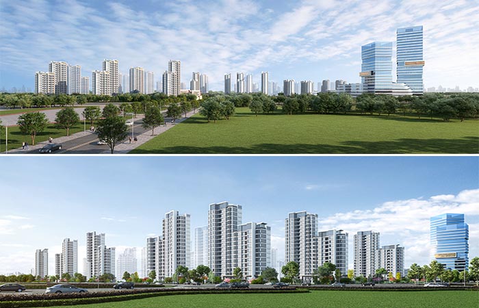項(xiàng)目總規(guī)劃用地1405畝,包含住宅、商業(yè)、教育、醫(yī)療、公園綠地等13類用地,其中,公建用地規(guī)劃于中心區(qū)域,沿環(huán)城水系兩岸,形成兩大服務(wù)設(shè)施中心,住宅呈環(huán)抱姿態(tài)分布于配套周圍。本次匯報范圍是東京北回遷區(qū)域首開區(qū)與二期地塊。項(xiàng)目規(guī)劃總建筑面積約74萬平方米,其中地上建筑面積約52萬平方米,地下建筑面積約22萬平方米,規(guī)劃設(shè)計49棟住宅樓,兩所中小學(xué),兩所幼兒園,一座商業(yè)綜合體,其他各項(xiàng)指標(biāo)均符合規(guī)劃要求。