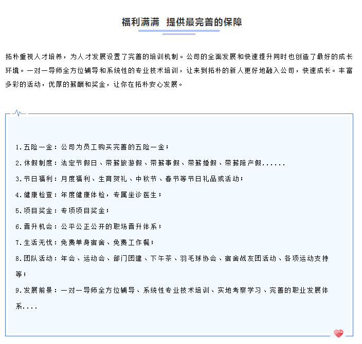 拓樸正處于快速發(fā)展階段,本著傳承我司“拓?zé)o境·樸為本”的企業(yè)文化精神,