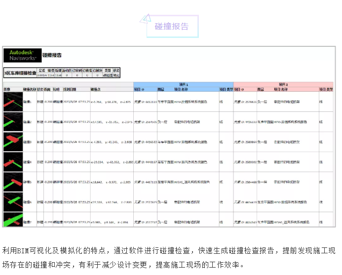 利用BIM可視化及模擬化的特點(diǎn),通過(guò)軟件進(jìn)行碰撞檢查,快速生成碰撞檢查報(bào)告,根據(jù)報(bào)告調(diào)整管線,